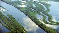 Manaus sits at the confluence of the Amazon with its largest tributary, the Rio Negro. (In fact Brazilians only call it the Amazon from this point - upstream it is the Rio Solimões.) The waters of the Rio Negro drain the Guyana Shield - ancient rocks from the precambrian era whose nutrients have long been washed away. Unlike the Solimoes whose milky brown waters carry a heavy load of sediments eroded from the Andes, the waters of the Rio Negro are clear, but stained the colour of black tea by tannins leached from forest leaves. A popular river excursion to the 'Meeting of the Waters' visits the place where they converge, running side by side without mixing for several kilometres.