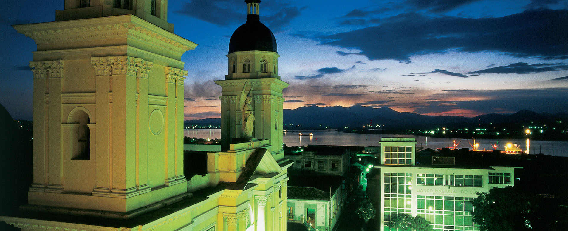 Tucked between the mountains of the Sierra Maestra and Gran Piedra, Santiago de Cuba is set beside the Caribbean across a fine bay. Looking down from the hills, you are presented with a fabulous view of blue sea, forest-clad mountains, and a city clothed in bougainvillea and flamboyán trees.