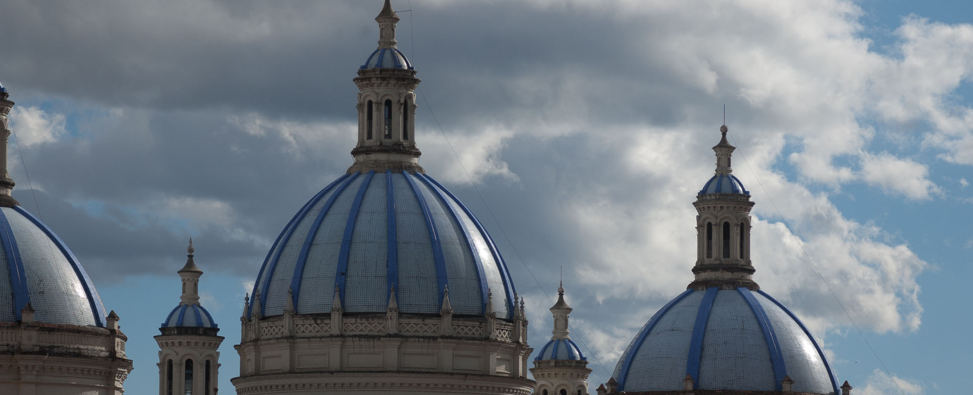 The streets of present-day Cuenca are filled with the life of a provincial capital, with a host of small shops and colourful markets. Fronting the central plaza is the rather splendid 'New' Cathedral, started in 1885. Its large blue-tiled domes, towers, arches and buttresses present an impressive sight, and contain below them a large nave that addresses one of the most ornate gilded altars one could wish to see, spangled by the light from windows lavishly furnished with stained glass. At the other end of the square is the Old Cathedral (El Sagrario), a much more humble building with whitewashed walls (incorporating some Incan stonework) and a single bell tower.