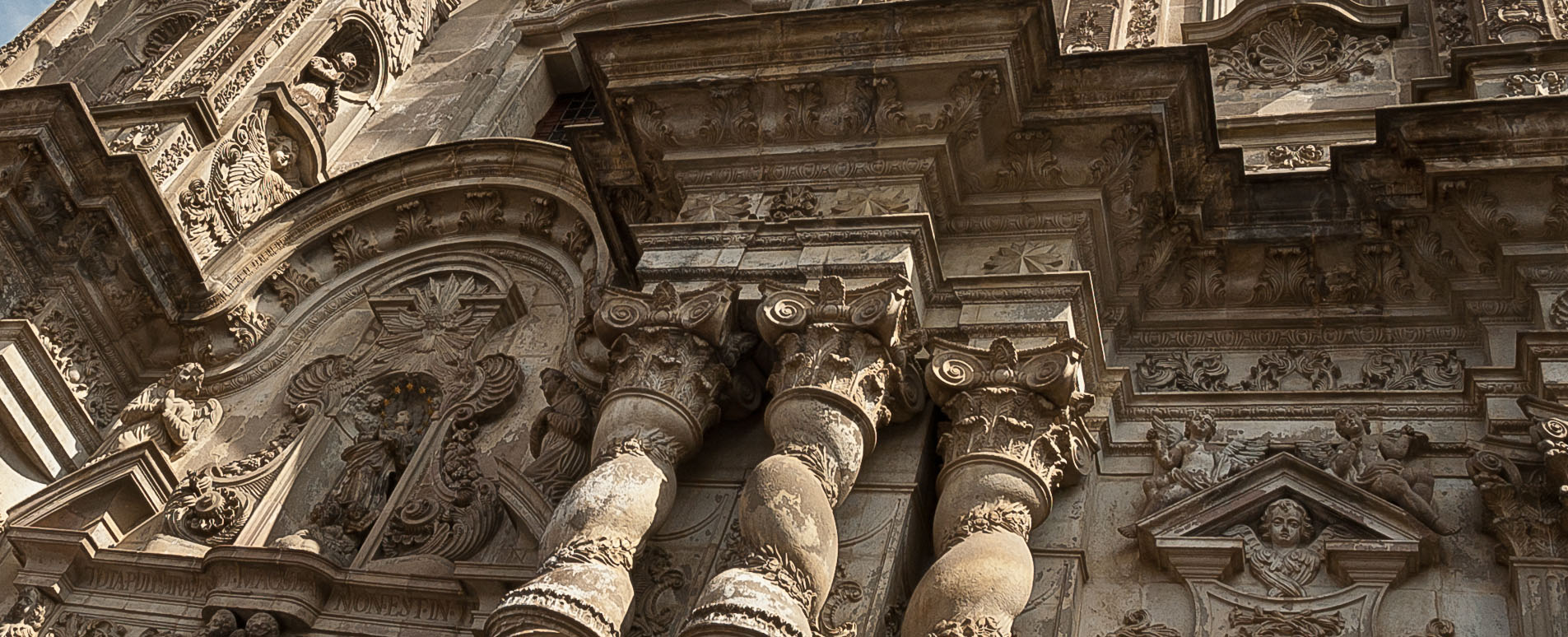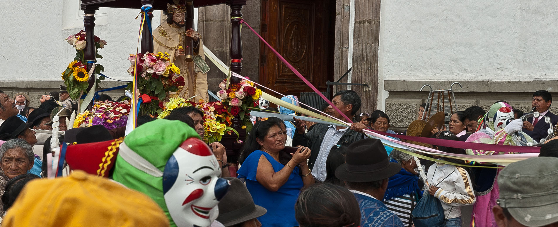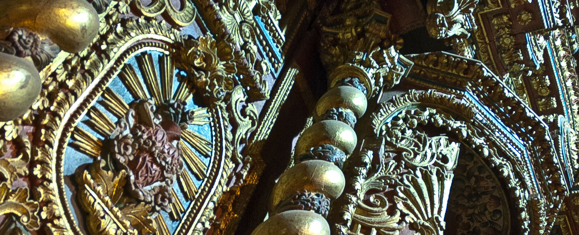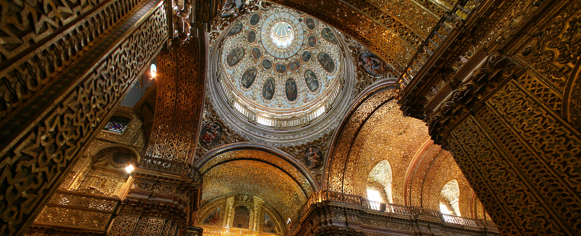 Entering from the heat of the equatorial sunshine through huge carved doors into the cool dark interior of a colonial church in the Old City you are first met by the rich scent of incense from palo santo wood. The interior sparkles with hundreds of twinkling devotional candles. On approaching the central aisle a vast altar gilded in gold or silver leaf succeeds in its intention of instilling awe. The most ornate, the Church of La Compañía de Jesús, constructed by the Jesuits in 1605, has a lace-work façade of twisted columns, sacred hearts and cherubs carved in volcanic rock, while the inside was laden with a reputed 7 tonnes of gold leaf. One can only imagine the impact such temples made on local people whose worship of the sun was to be converted to the worship of the Christian deity.