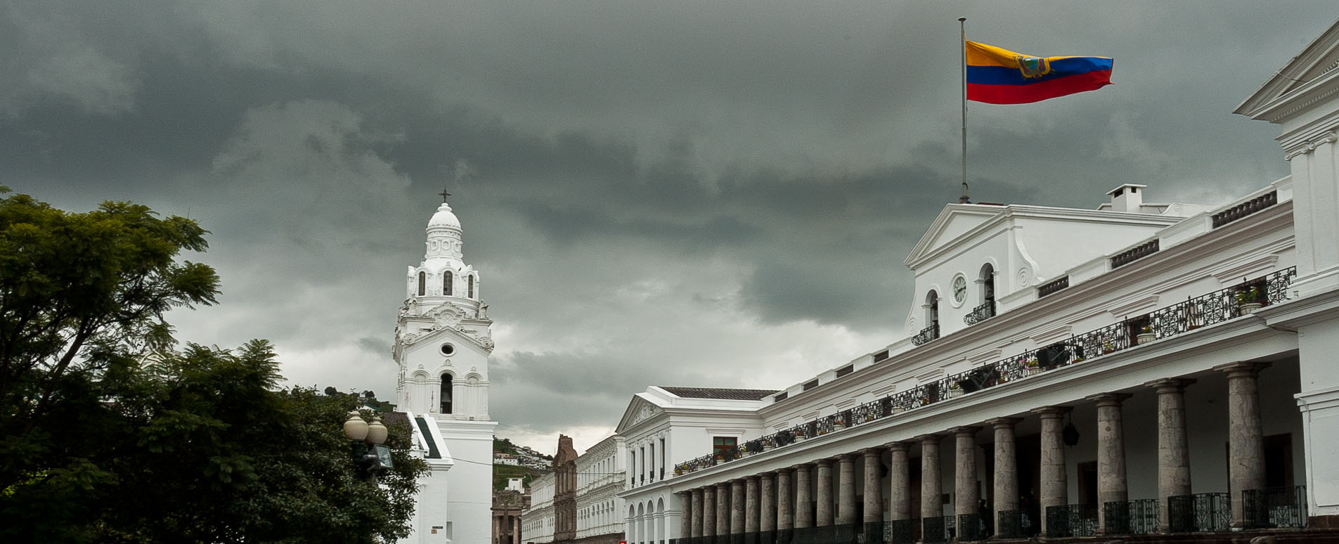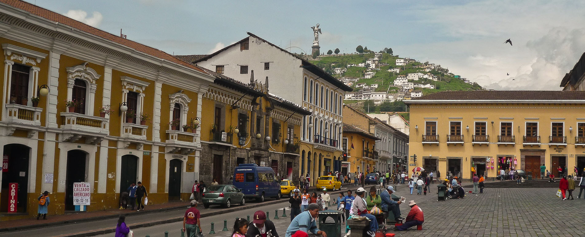 At the centre of the whitewashed walls and pan-tiled roofs of Quito's Old City is the Plaza de la Independencia, a large and attractive square impressively surrounded by the four pillars of colonial society: the Cathedral, Presidential Palace, Archbishop's Palace and Municipal Palace (now a modern replacement). With its well kept flower beds this bustling location makes a good place for the city's well-to-do to congregate and talk, with a few having their shoes shined while they watch the world go by.