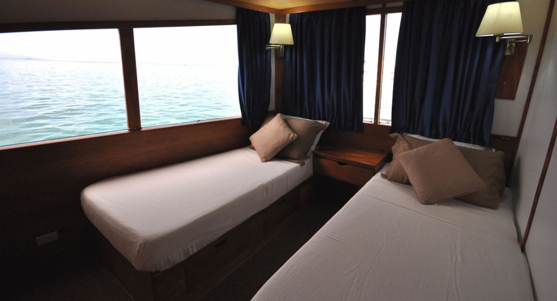 Crew: 10 ( including Captain, 2 engieneers, 4 sailors, cook, barman and mulitilingual naturalist guide)