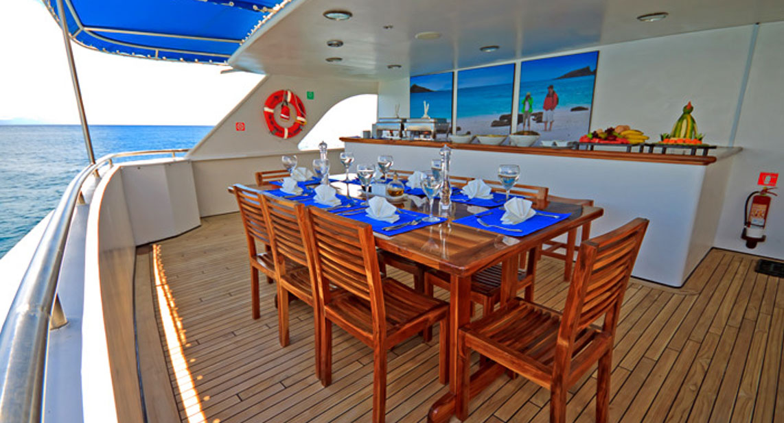 Crew: 11 (including Captain, First Mate, Chef, Sous Chef, Engineer, Assistant Engineer, Sailor, Barman, Housekeeper and Bilingual Naturalist Guide)